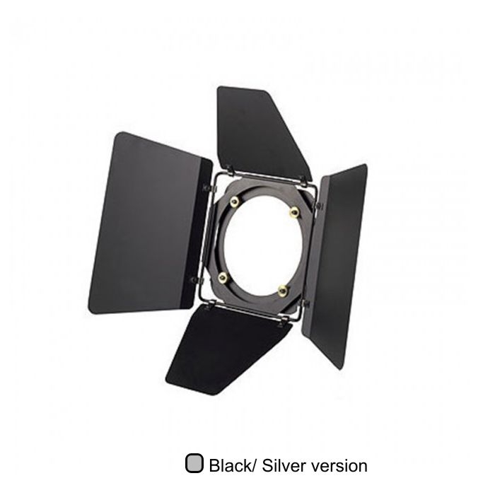 4-leaf barndoor for Cetra, Suono and tempo projectors or similar. Colour: black/silver