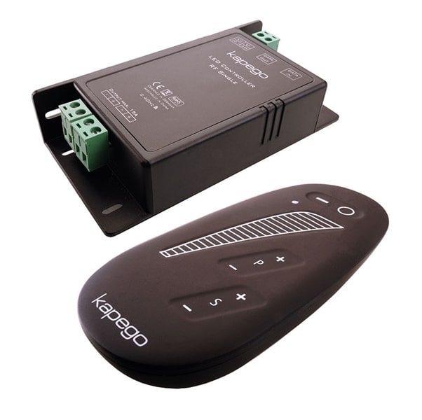 Dimmer controller for led lights with touch remote control allows you to dim a led strip or other 12Volt or 24Volt led light source. RF touch remote control included with control capability of max distance 30 meters, It is possible to create 4 different light effects with the programs button and adjust their speed with the speed button.