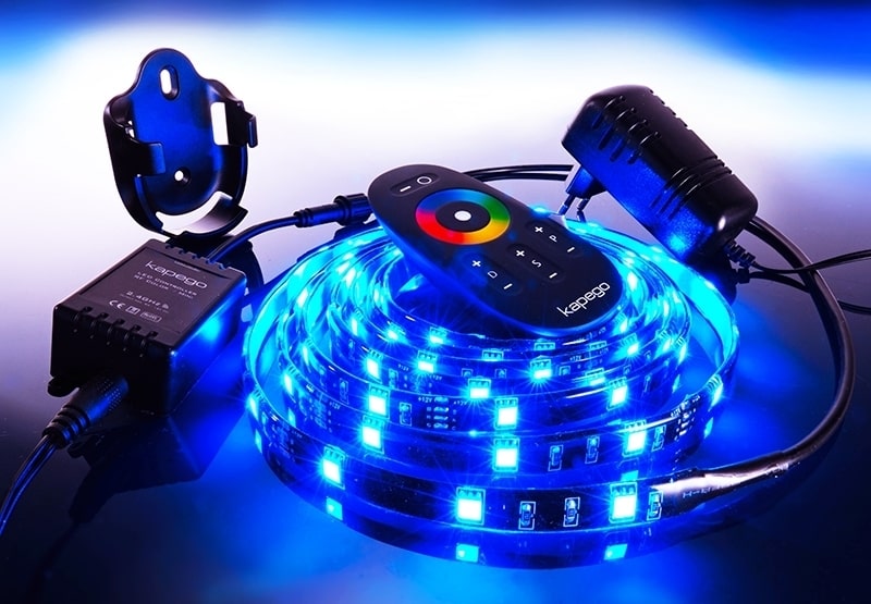 Mounting kit for flexible led strips with high quality and 2,5 m lenght and remote controller. Red, Green and Blu colours can be dimmerable. It includes: led strips, power supply, wall remote holder and remote controller. this version will be substituted by the model code: 846012.