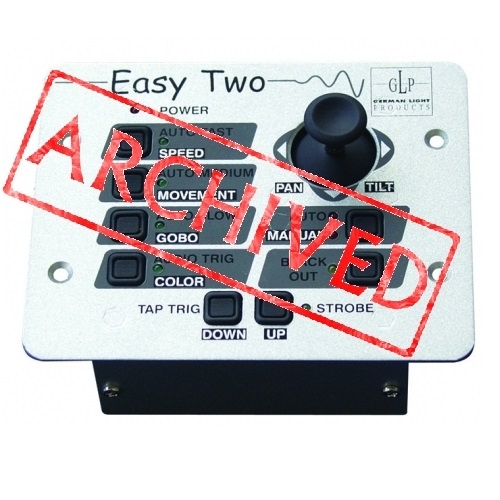 The EASY TWO is a new controller specifically designed for Junior Scan 1 and 2 and allows you to control the various drives in Master-Slave mode. It also has a Stand-Alone program that allows you to set different speeds, audio modes, and manual control. Strobe and Blackout are switchable at all times. The joystick integrated by the user has the ability to blend passage from Pan to Tilt. Colors and gobos can also be adjusted manually. Easy Two is the ideal product for those who do not need to schedule scenes.