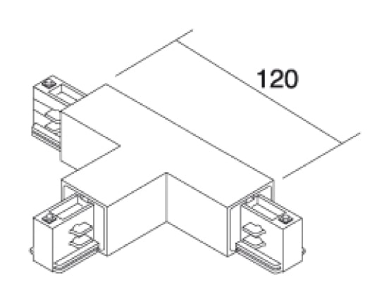 T-connector with feeding possibility, black, neutral left, for square track system. Ivela code: 7656-11-W30. Technical Details: