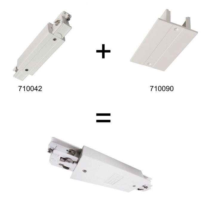 Plastic cover designed to be combined with longitudinal connector with feed for 3-phase track systems, making the accessory suitable for recessed installation.