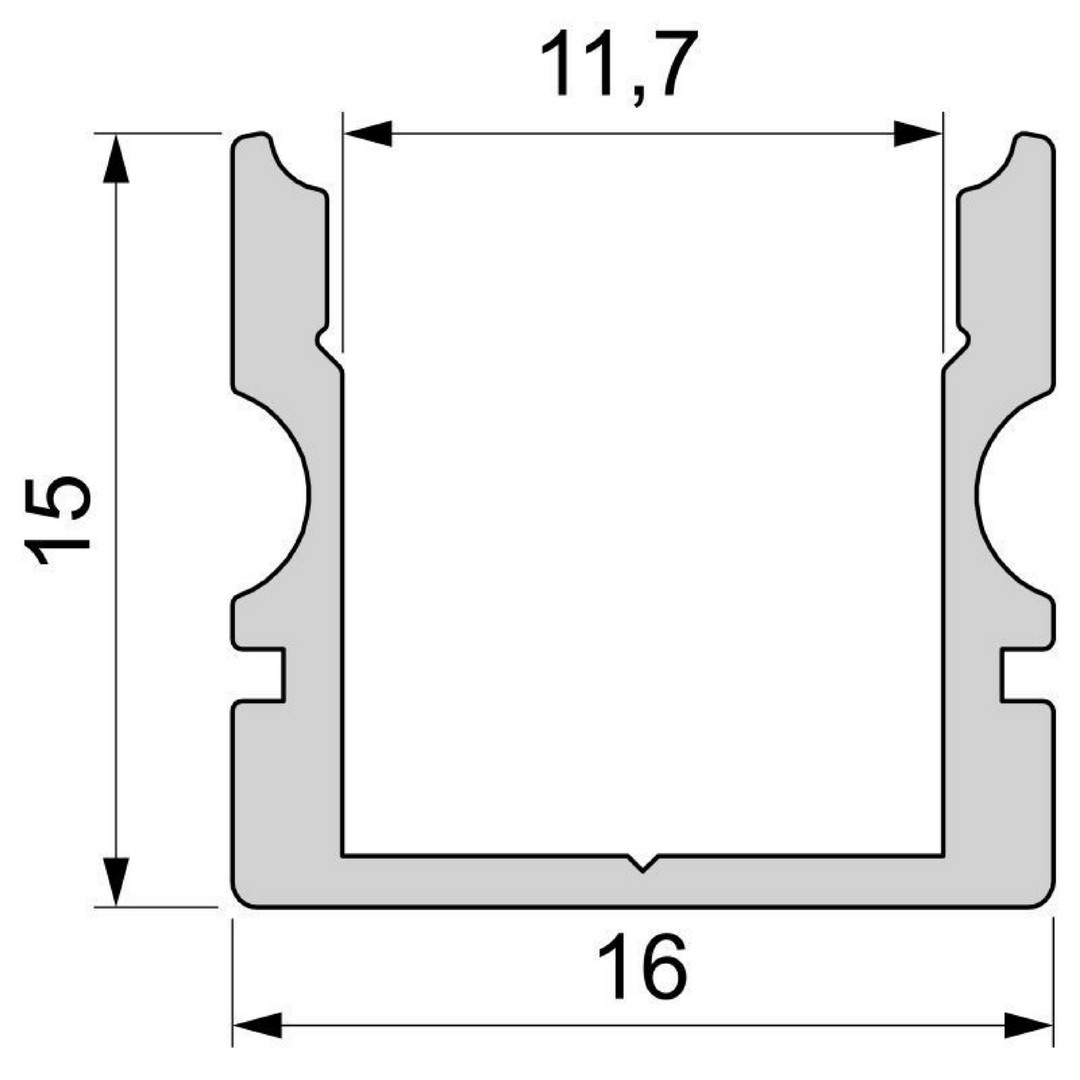 The High-U profile AU-02-10 is the perfect solution for LED lighting with flexible and rigid strips up to 11,3 mm. Thanks to its small dimension ( 15 x 16 mm ), is suitable for the illumination of interior spaces, for wall, ceiling, floor, furniture, kitchen, display, shelves and advertising. Easy to install, it can be easily cut by ownwork and grants protection of Led stripes by external influences. Then it allows more durability to the stripes thanks to its internal system of passive cooling. Aluminium anodized version, 1 m.