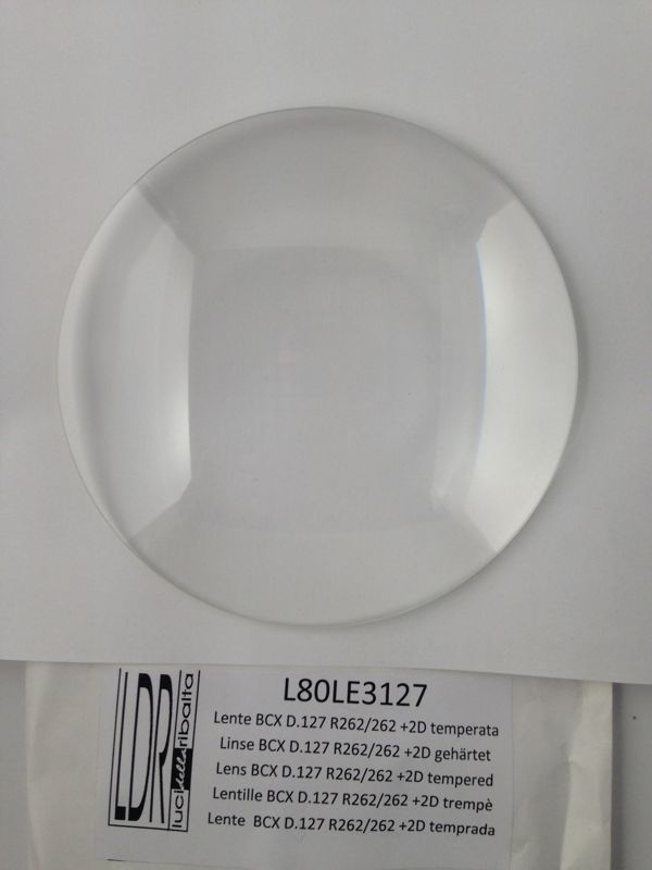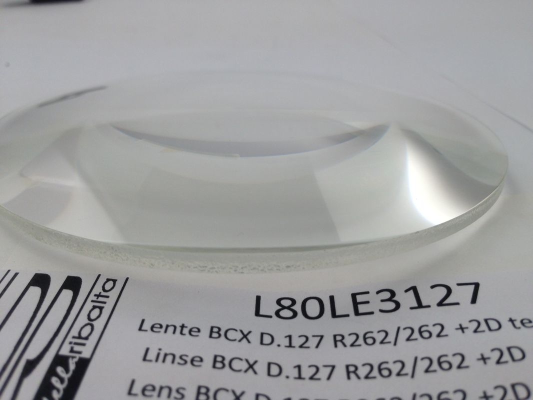 Spare parts front lens biconvex for Tono 18/36. Diameter: 127 mm, R262 +2D temperated.