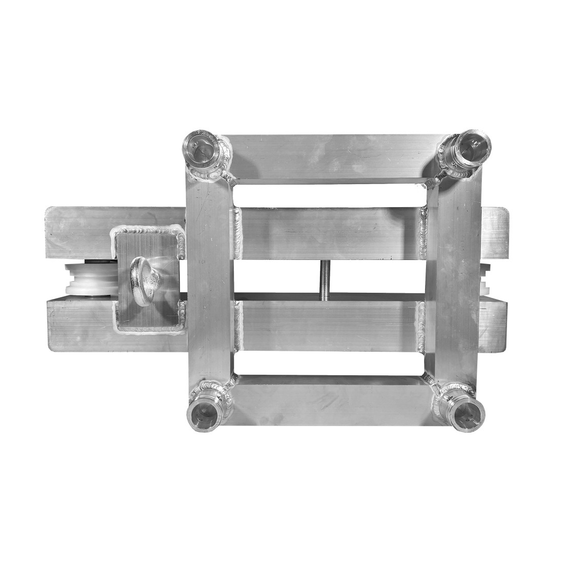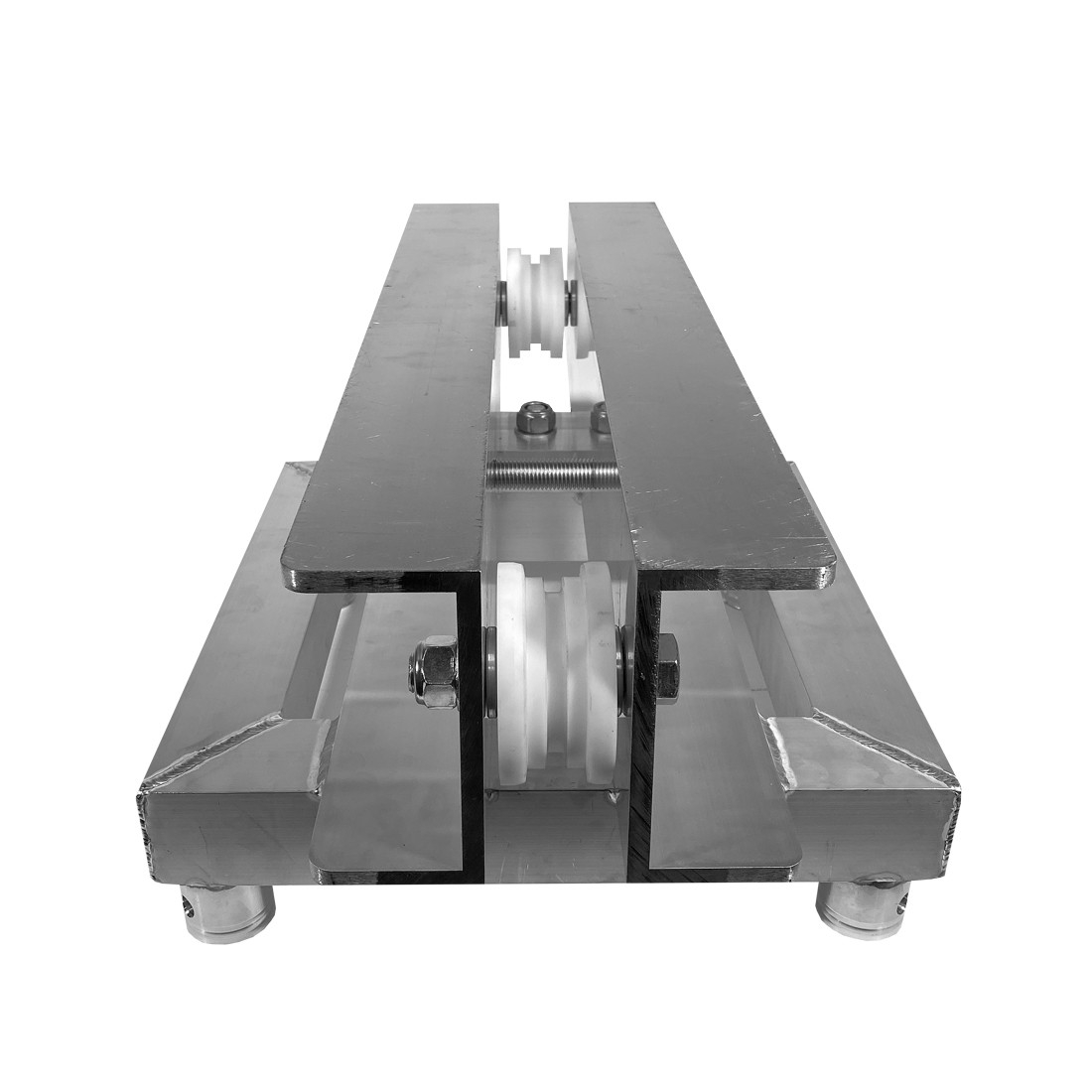 Top section for Tower 2 made with truss serie DT 44. It allows to make the sleeve block run up and down the tower.