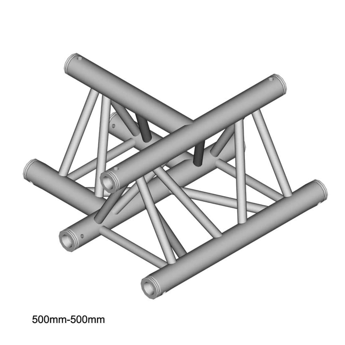 The DT33 series is a 3-point-trussing-system with conical coupler (spigot), trusspin and safety clip. The advantage of the quick connector system lies in the fact that it closes force-locking the belt tube and allows rapid assembly and dismantling. The tubes are made of 50mm aluminum tube with a wall thickness of 2mm and give this system an outstanding strength-to-weight ratio. The system also includes cones, steel pins and safety clips. Technical specs: