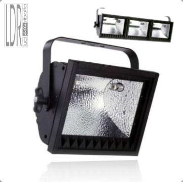 Halogen asymmetric 500W flood without bracket for single or multiple module.
