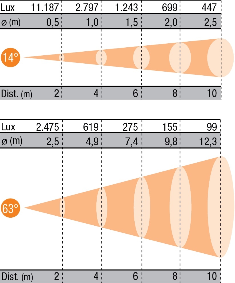 Aluminum housing for high heat dissipation by natural ventilation, adjustable forced ventilation, filter frame lockable top cover, yoke with clutch-locking system adjustable for fixture balancing, PO version on request, with 3-way pole operation for tilt, pan and focus, or ARC version on request, with 3-way DMX control of tilt, pan and focus