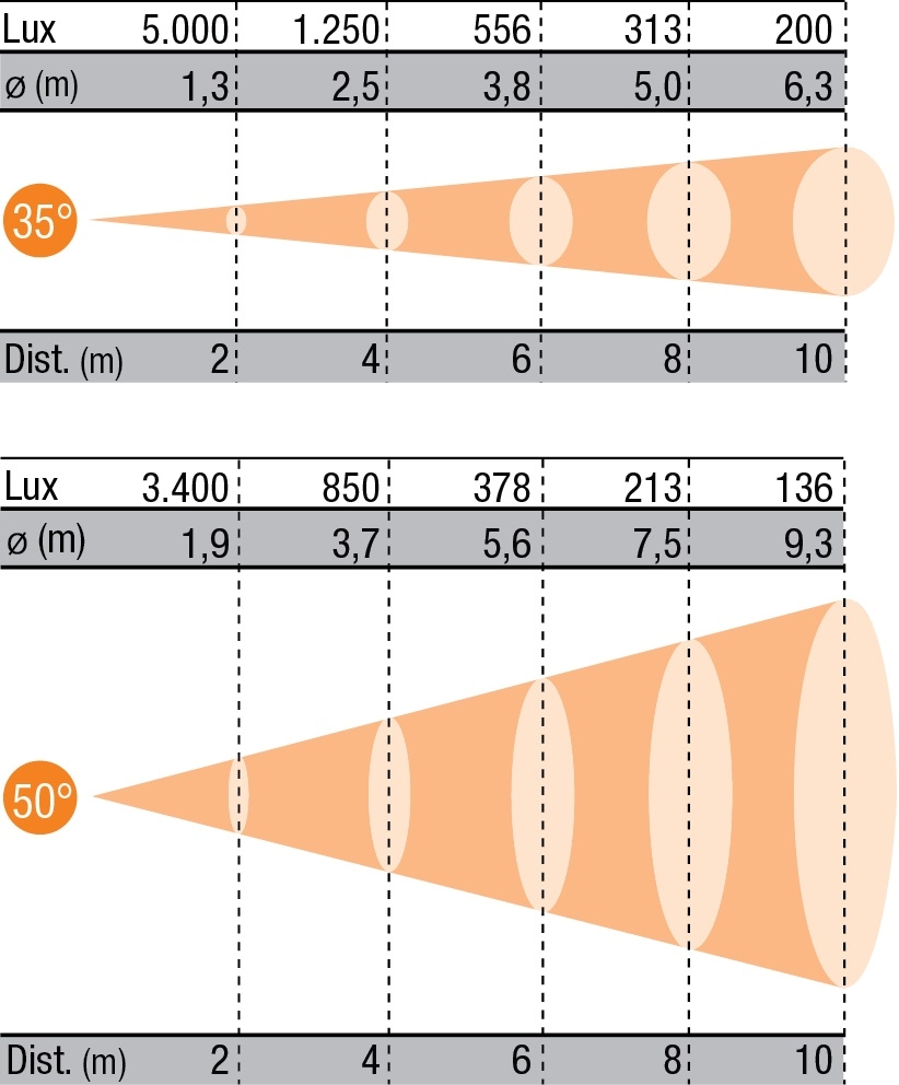 LED temperature range control to guarantee the best performances, constant colour temperature during the whole dimming curve, remote controllable funcions via DMX-RDM