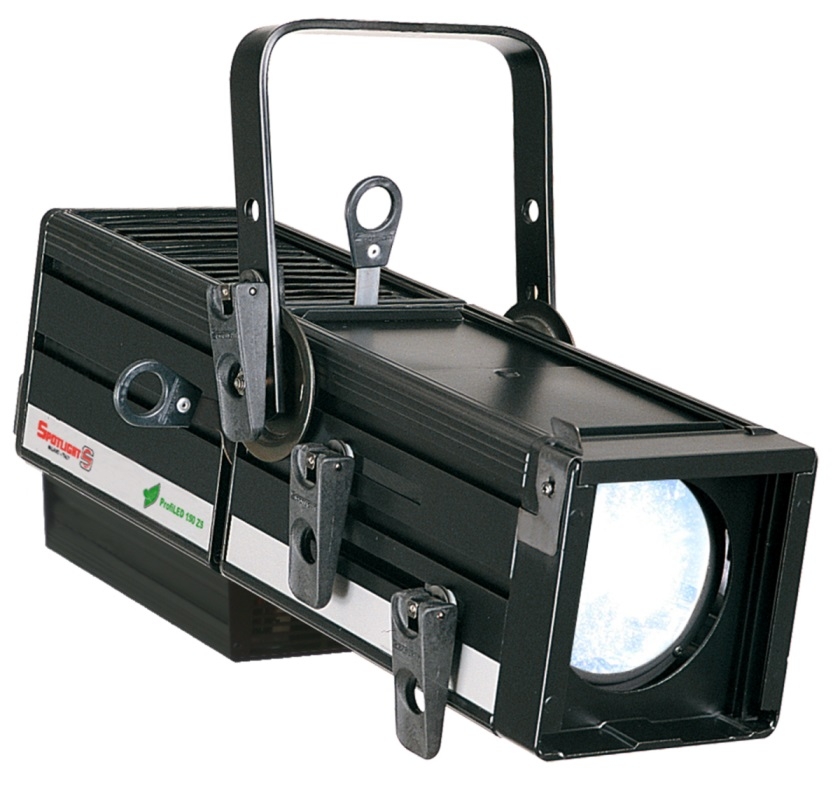 Aluminum housing for high heat dissipation by natural ventilation, adjustable forced ventilation, independent and removable shutter blades for beam shaping, filter frame lockable top cover, gobo-holder slot, soft and smooth lens focusing adjustment, yoke with clutch-locking system, adjustable yoke for fixture balancing
