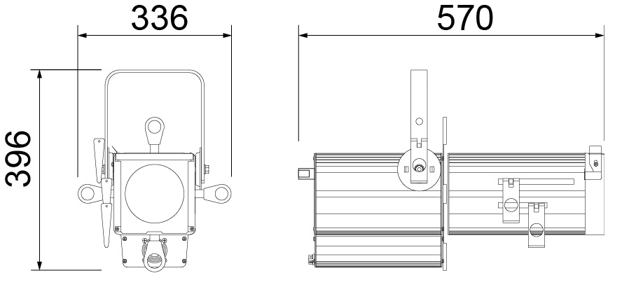 Profile with adjustable shutters, adjustable yoke, adjustable optical zoom and focus. Recommended ofr accent and precise lighting, as well as for images projection (gobos). Available with motorized yokes with DMX control or pole operated yokes. Source: LED Tunable White 2700K - 6500K, power: 150W, Zoom: 25° - 39°, control: DMX-RDM, CRI: >90, connectors: Cable without plug, voltage: 90-260V, 50-60Hz, Weight: 7,5 Kg, Dimensions: 396mm x 570mm x 336mm