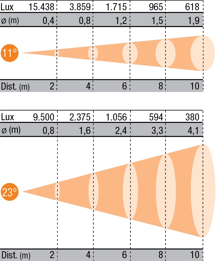 LED temperature range control to guarantee the best performances, constant colour temperature during the whole dimming curve, remote controllable funcions via DMX-RDM