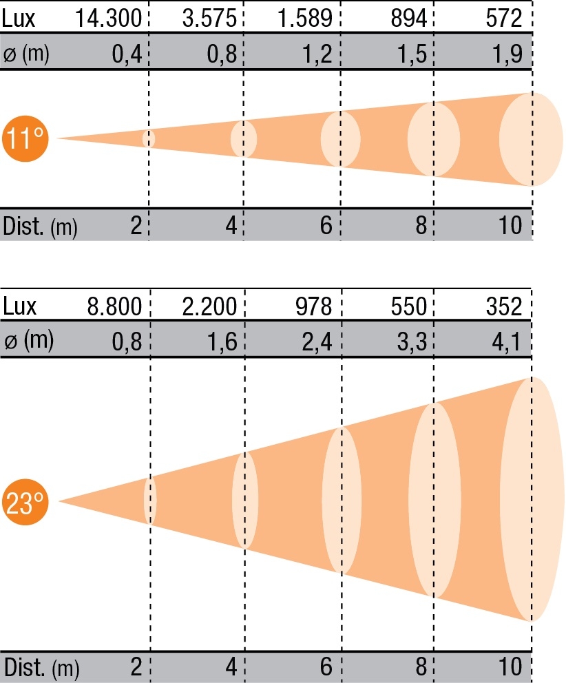 LED temperature range control to guarantee the best performances, constant colour temperature during the whole dimming curve, remote controllable funcions via DMX-RDM