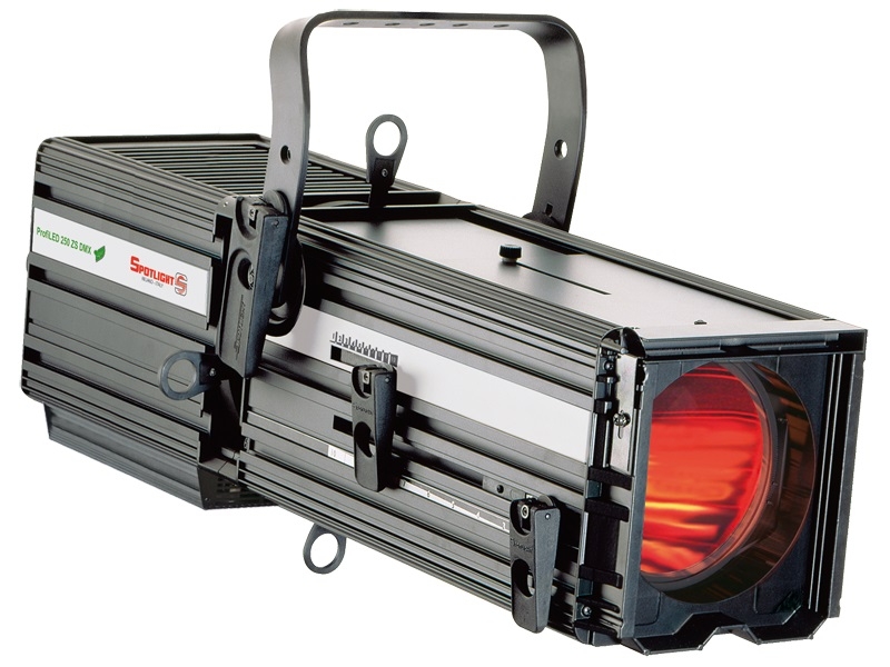 Profile with adjustable shutters, adjustable yoke, adjustable optical zoom and focus. Recommended ofr accent and precise lighting, as well as for images projection (gobos). Available with motorized yokes with DMX control or pole operated yokes. Source: LED RGBW, power: 250W, Zoom: 10° - 22°, control: DMX-RDM, CRI: >90, connectors: Cable without plug, voltage: 90-260V, 50-60Hz, Weight: 14 Kg, Dimensions: 456 mm x 792 mm x 336 mm
