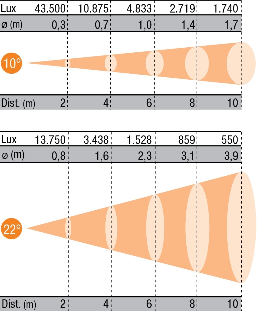 LED temperature range control to guarantee the best performances, constant colour temperature during the whole dimming curve, remote controllable funcions via DMX-RDM