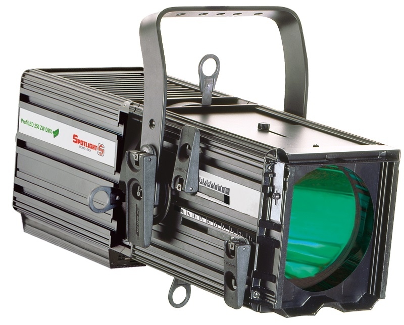 Profile with adjustable shutters, adjustable yoke, adjustable optical zoom and focus. Recommended ofr accent and precise lighting, as well as for images projection (gobos). Available with motorized yokes with DMX control or pole operated yokes. Source: LED RGBW, power: 250W, Zoom: 24° - 44°, control: DMX-RDM, CRI: >90, connectors: Cable without plug, voltage: 90-260V, 50-60Hz, Weight: 12 Kg, Dimensions: 456 mm x 642 mm x 336 mm
