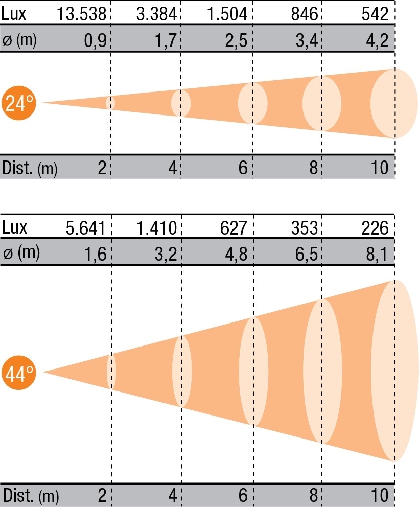 LED temperature range control to guarantee the best performances, constant colour temperature during the whole dimming curve, remote controllable funcions via DMX-RDM