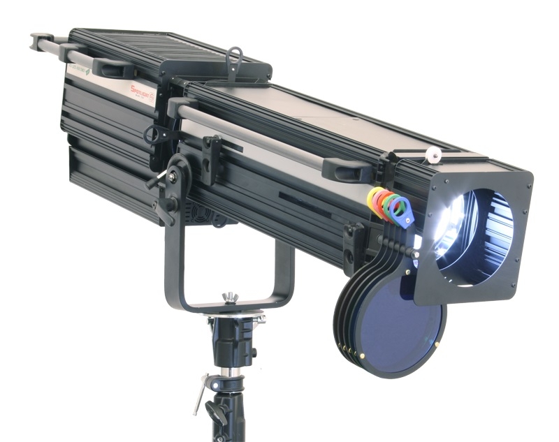 Aluminum housing for high heat dissipation by natural ventilation, adjustable forced ventilation, independent and removable shutter blades for beam shaping, filter frame lockable top cover, gobo-holder slot,