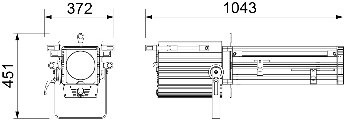 soft and smooth lens focusing adjustment, yoke with clutch-locking system, adjustable yoke for fixture balancing