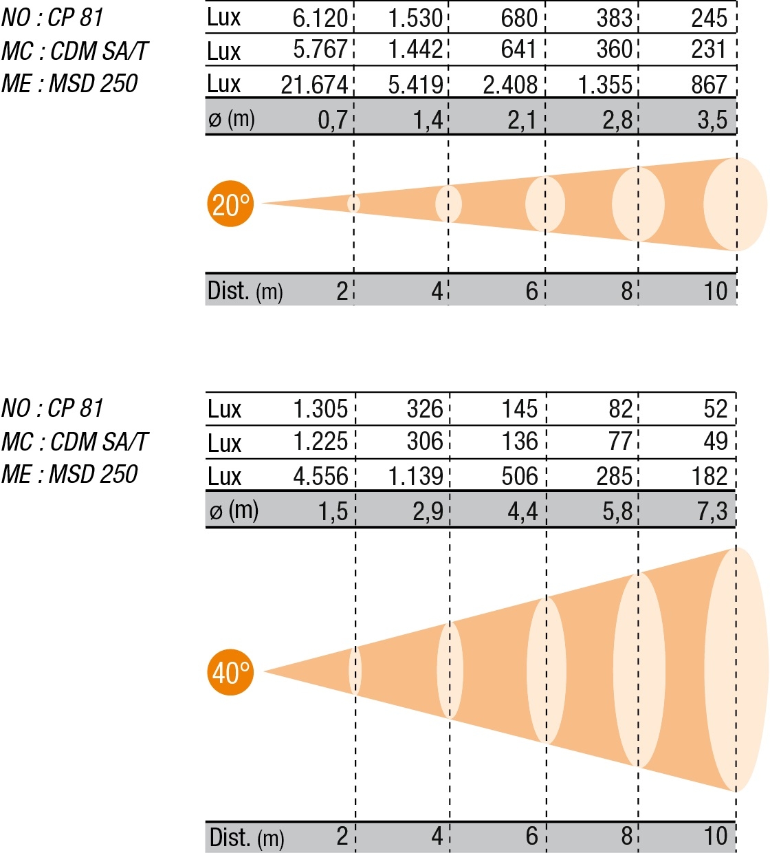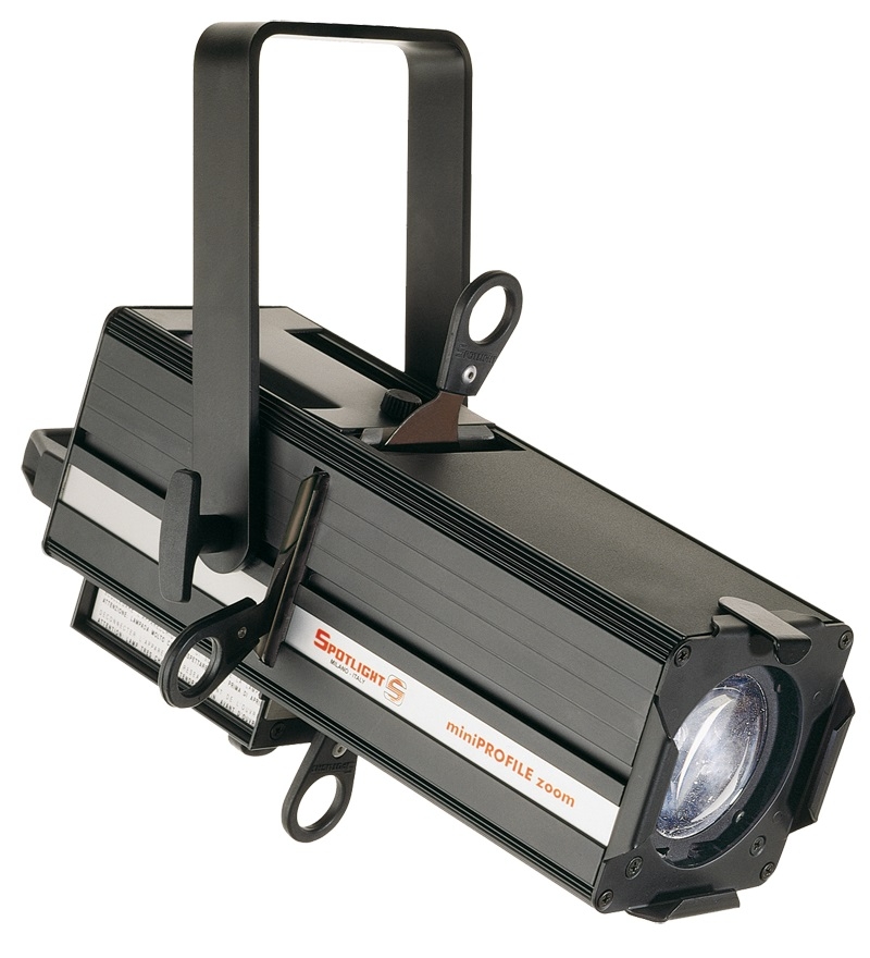 Luminaire with adjustable shutter, adjustable yoke, adjustable optical system and focus. Recommended for accent and precise lighting, as well as for images projection (gobos). Available with motorized yokes with DMX control or pole operated yokes.