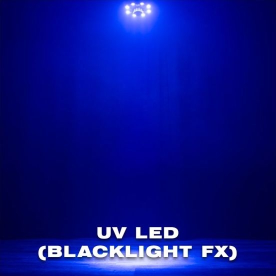 UV Wash: 8 powerful 3W UV LEDs for the classic "blacklight" effect, perfect for environments that require intense UV lighting
