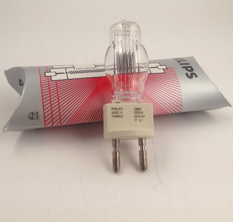 Lampada alogena 2000W 230V con attacco G22, 3200K, 5000lm, 500h. Ideale per vecchi fari teatrali.