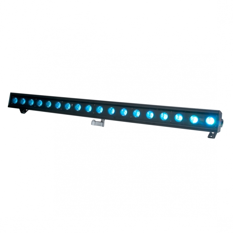 Caratteristiche: - 1 Metro, 18x 3W Tri LEDs Pixel Bar; - 5 modalità operative; - 7 canali DMX; - Programma integrato & Macro colore; - Dimming elettronico 0-100%; - Disponibili controlli Kling-Net & Art-Net; - Controllo pixel individuale. Specifiche: - Sorgente luminosa: 18 x 3W TRI LEDs, (durata approssimativa 50.000 ore); - Modalità Operative: 5 - Controllo DMX / Attivazione sonora / Net Control / Dimmer / Auto Run; - Fascio luminoso: 40 gradi; - Luminosità: 393 @ 3M at 40; - Kling Net Control: SI; - Art-Net Control: SI; - Display: 2 x 8 LCD; - Connessione RJ45: Si In/Out; - Canali DMX: 7 DMX Modalità, (3, 4, 6, 8, 9, 15, o 54 Ch); - Connessioni DMX: 3-Pin In/Out; - Programmi integrati: 14; - Macro Colore: 32; - Dimming: Elettronico 0-100%; - Flicker Free: Si; - Shutter / Strobe: Si; - Strobe Rate: regolabile; - Attivazione sonora: Si; - Connessione: IEC AC In/out; - Input Voltage: AC 100V-240V 50/60Hz; - Consumo: 98W; - Power Link: fino a 6 Ultra Kling Bar 18's; - Dimensioni: (LxWxH) 1100 X 80 X 116mm; - Peso: 6 kg