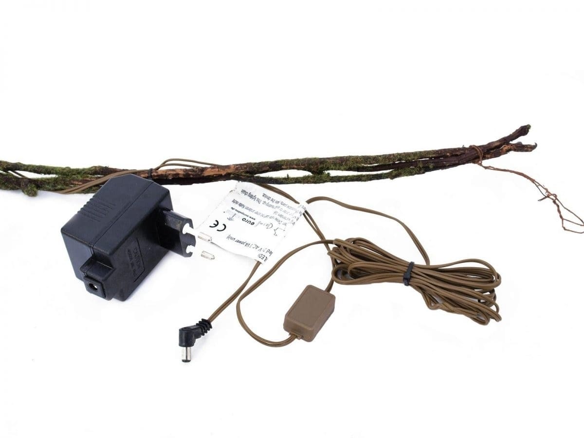 Ramoscello di erica sintetica da decorazione. 1 ramo con 20 led bianchi, fiori e foglie flessibili, rametti marroni ondulati con foglie decorative. Per uso interno. Pronto all'uso con alimentatore con cavo da 3 metri incluso.