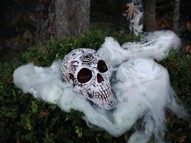 Cranio decorativo ricoperto quasi interamente da rune e simboli misteriosi. Un oggetto originale per rendere ancora più spaventose la vostra festa a tema o di Halloween. Quali storie e misteri nasconde? Proviene dal mondo dei druidi, dei maja o da uno stregone?