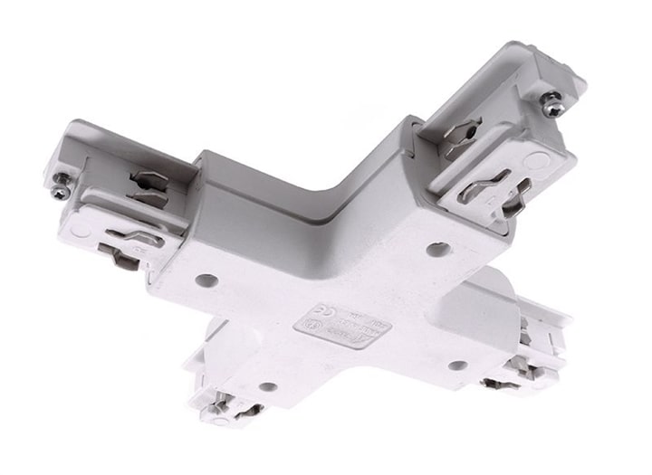 Connettore a X con possibilità di alimentazione, nero per binario quadrato. Codice ivela: 7657-10-W31. Dettagli tecnici: