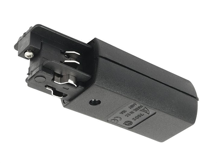 Alimentazione nera con neutro a sinistra per binario elettrificato rotondo. Codice ivela: 7602-11-W-30. Dati tecnici:
