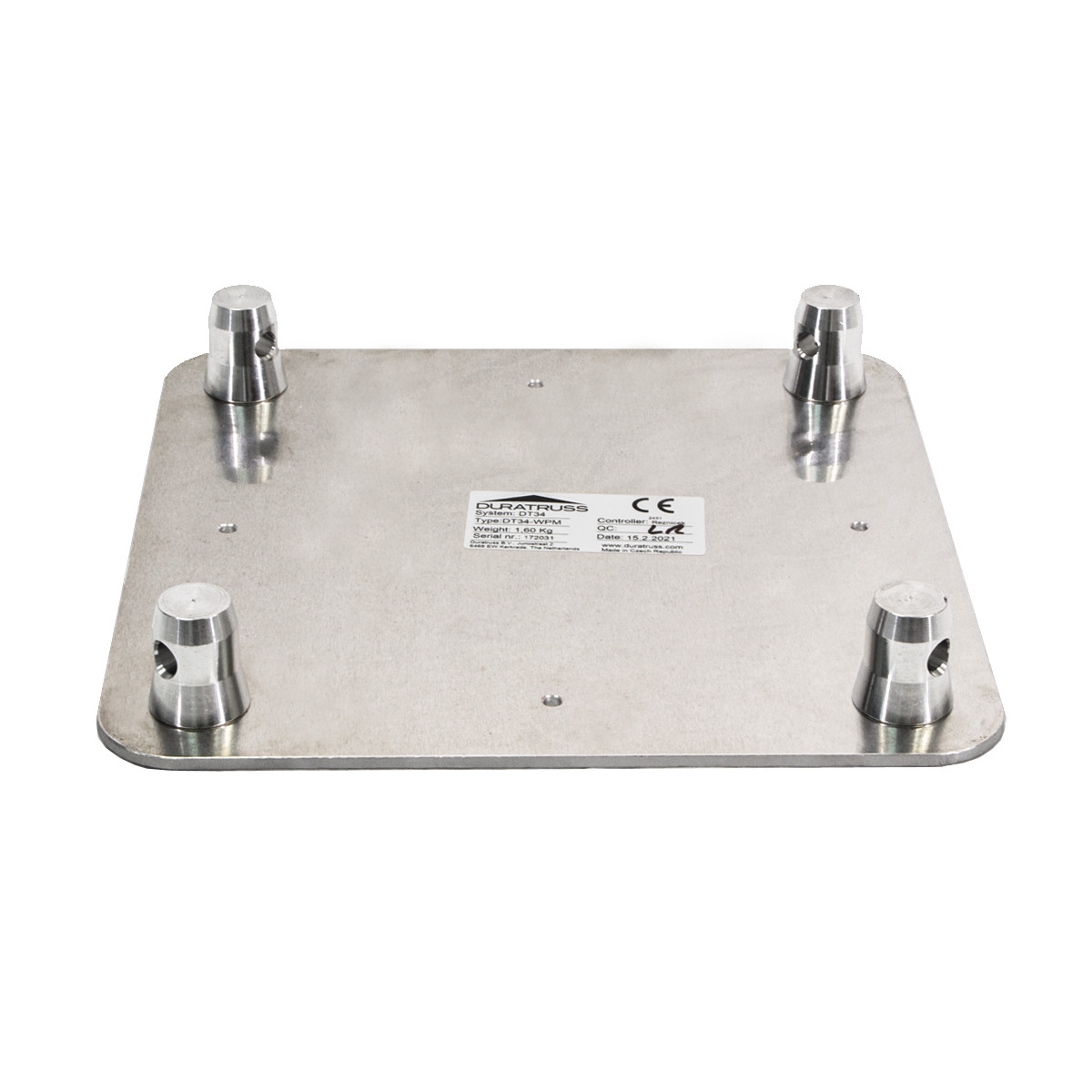 Piastra a muro maschio per traliccio serie DT 34. Dimensioni: 305 x 305 mm, altezza 5 mm, peso 1,5 Kg.