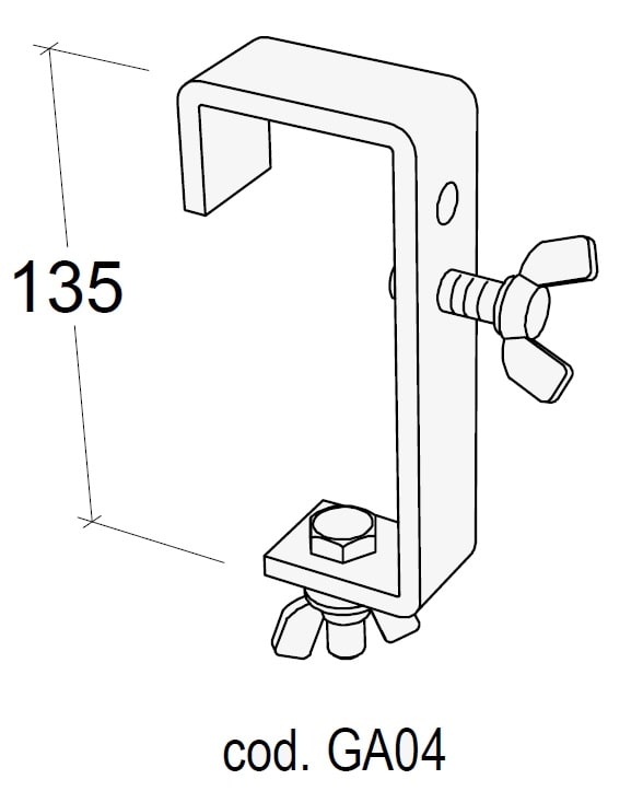 Il gancio GA04 è realizzato in acciaio S275JR, piegato e forato, verniciato nero semiopaco RAL9005. Ideale per tubi di tralicci o vario genere di diametro 5 centimetri.