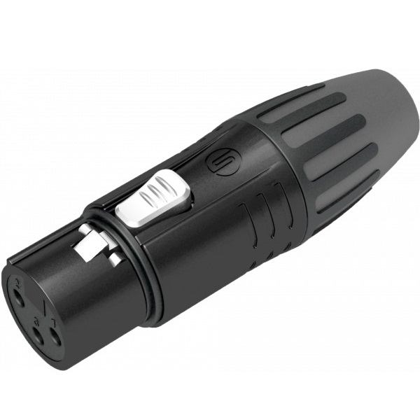 Connettore XLR 3 poli femmina con corpo in metallo, colore nero, per una lunga durata e alta affidabilità.