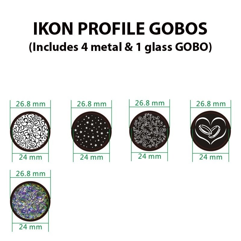 - Dimensioni Gobo: 26.8mm; Dimensione visibile: 24mm;