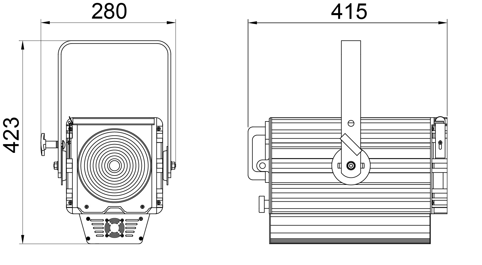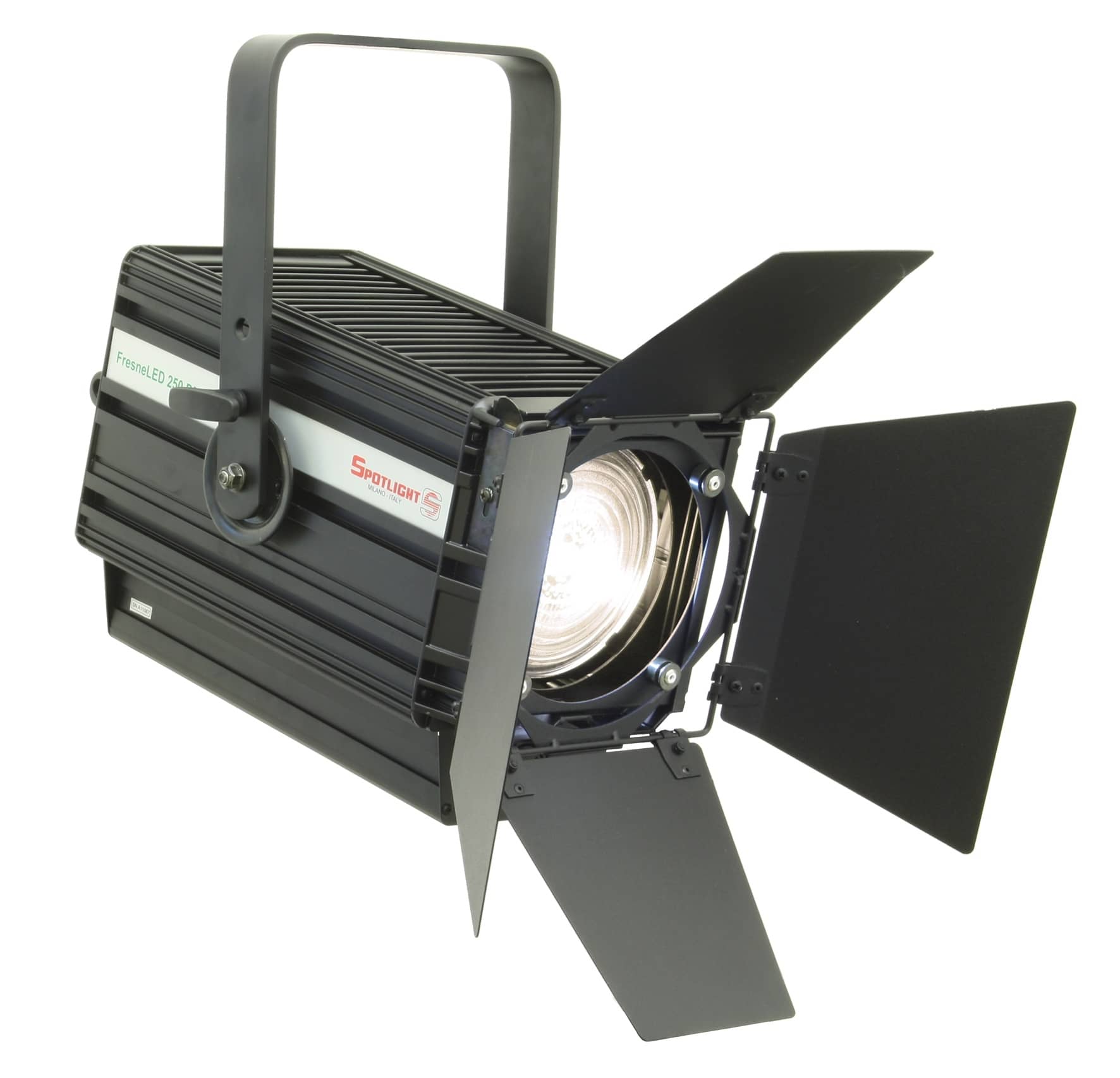 Proiettore a led dotato di lente Fresnel con regolazione del fascio da spot a flood a bordi sfumati. Consigliato per l'illuminazione direzionale morbida e uniforme. Disponibile nella versione con controllo motorizzato o con comando a palo. Serie Green Line. Sorgente: LED Bianco Caldo 3200K, Potenza: 250W, Controllo: DMX-RDM, Connettori: Powercon® In&Out, Tensione di alimentazione:90-260V, 50-60Hz, Peso: 9 Kg, Dimensioni: 423mm x 415mm x 280mm