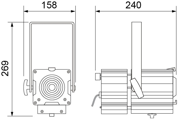 Proiettore a led dotato di lente Fresnel con regolazione del fascio da spot a flood a bordi sfumati. Consigliato per l'illuminazione direzionale morbida e uniforme. Disponibile nella versione con controllo motorizzato o con comando a palo. Serie Green Line. Sorgente: LED Bianco Freddo 5600K, Potenza: 50W, Controllo: DMX-RDM, Connettori: Powercon® In&Out, Tensione di alimentazione:90-260V, 50-60Hz, Peso: 2,5 Kg, Dimensioni: 215 mm x 475mm x 200mm