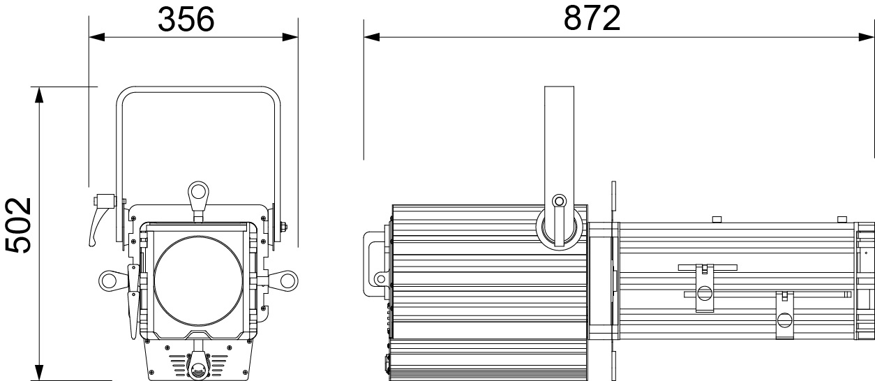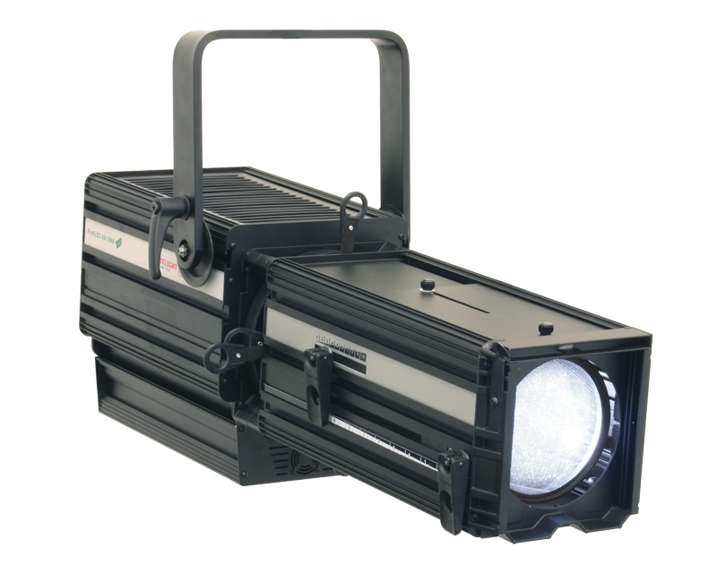 Sagomatore a led dotato di lamelle sagomatrici, forcella orientabile e sistema di regolazione dello zoom e della messa a fuoco. Consigliati per l'illuminazione d'accento e di precisione, oltre che per la proiezione di immagini (gobos). Disponibili nella versione con controllo motorizzato o con comando a palo. Sorgente: LED bianco freddo 5600K, potenza: 450W, Zoom: 14° - 30°, Controllo: DMX-RDM, CRI: >90, Connettori: Cavo senza spina, Tensione di alimentazione: 90-260V, 50-60Hz, peso: 13,5 Kg, dimensioni: 502 mm x 872 mm x 356 mm