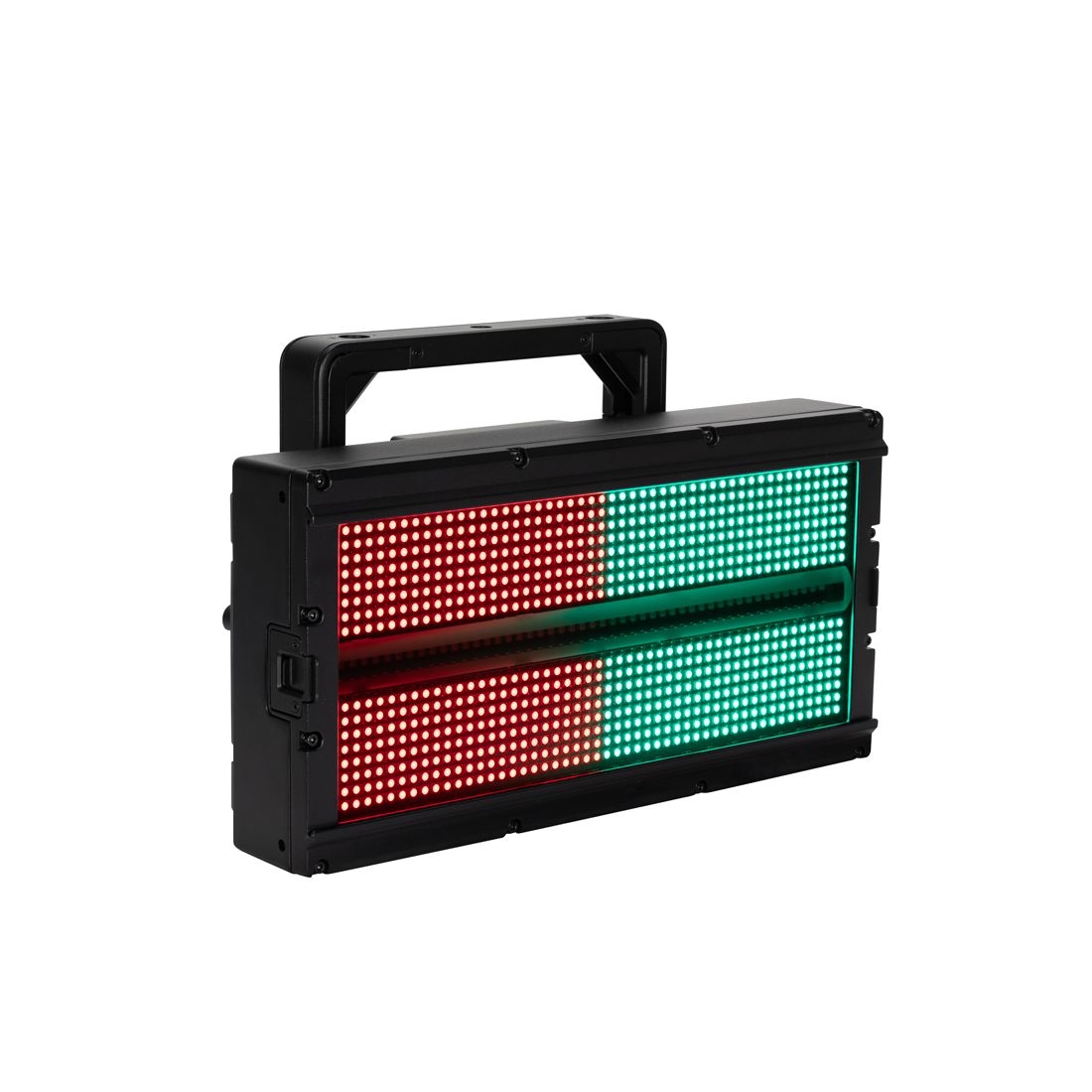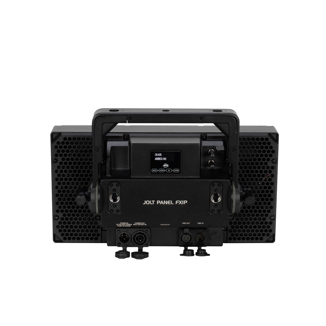 Jolt Panel FX IP è un proiettore LED professionale multiuso di nuova generazione, progettato per offrire effetti strobo, wash e eye candy ad alta intensità visiva. Dotato di 800 LED RGB SMD da 0,5W e 48 LED bianchi SMD da 5W, garantisce un impatto luminoso eccezionale per palchi di grandi dimensioni, concerti, eventi live, tour e locali notturni. I LED sono distribuiti in 40 zone RGB e 6 zone bianche indipendenti, consentendo una programmazione dinamica e sequenze di effetti LED animate estremamente coinvolgenti. La potenza luminosa, unita all'ampio angolo di fascio (73°) e di campo (111°), rende il Jolt Panel FX IP una scelta ideale per i light designer più esigenti. Classificato con grado di protezione IP65, questo proiettore LED è adatto per installazioni temporanee sia interne che esterne, garantendo resistenza a polvere e spruzzi d'acqua. Inoltre è dotato di DMX wireless integrato tramite il sistema Aria X2 di ADJ, compatibile anche con il WiFLY EXR. Questa funzionalità permette una gestione del segnale senza cavi, ideale per produzioni mobili e allestimenti rapidi. Sulla parte frontale è presente un canale per filtri di modellazione della luce, utili per sfocare i pixel LED e modificare l’estetica luminosa in base al tipo di evento o spettacolo.